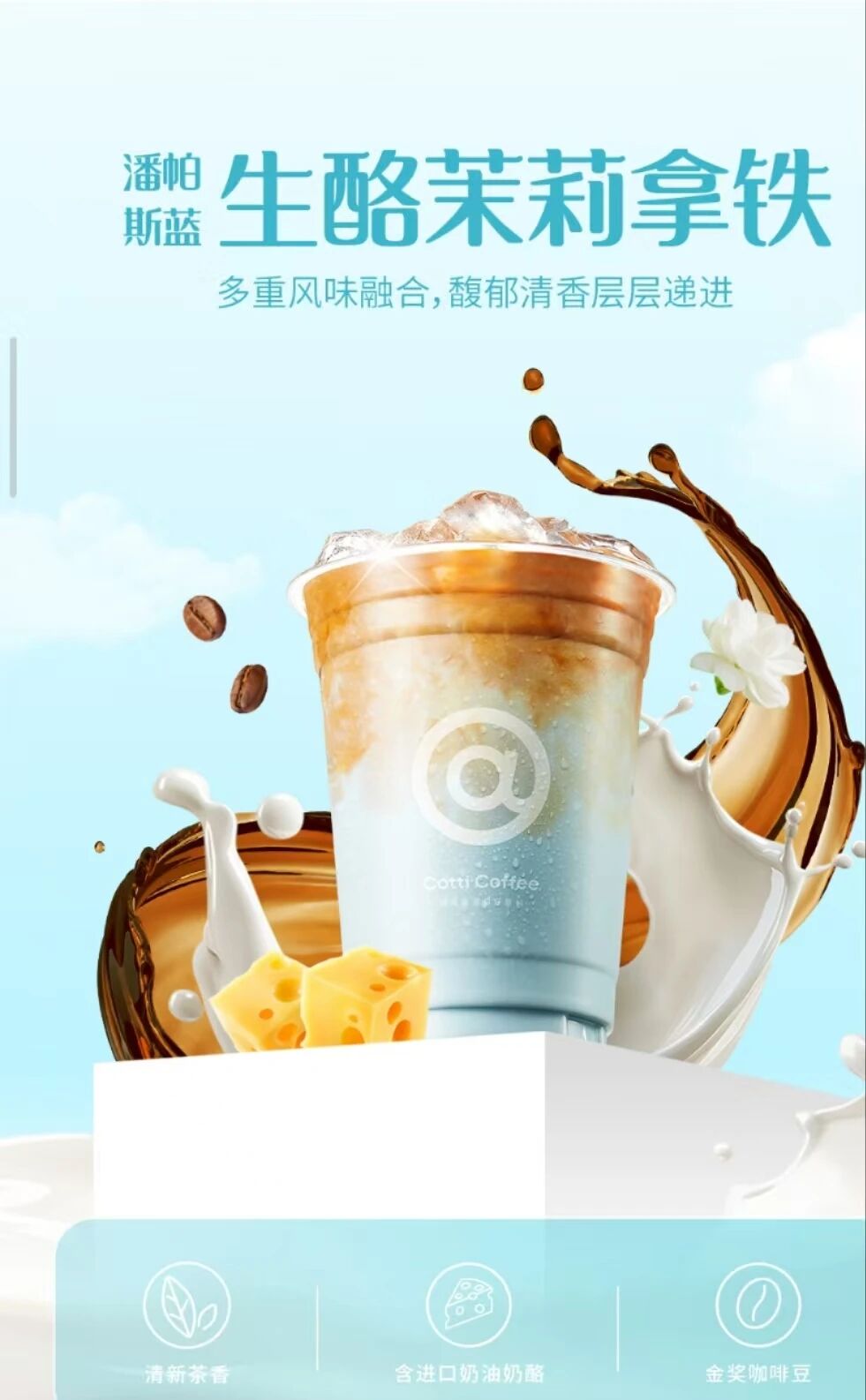 朋友圈颜值天花板!梦幻渐变蓝分层超上镜,清冽茉莉花香融合绵密生酪与醇厚咖啡,三重口感层次丰富,建议少糖,风味更佳!